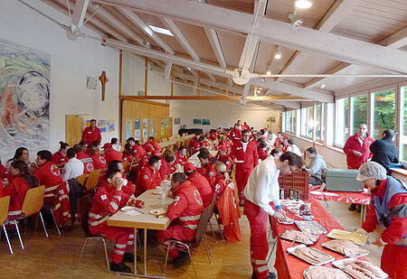 Das Hochwasser in Bayern führte ab Sonntag zu einem landesweiten Großeinsatz von ehrenamtlichen Rotkreuzeinheiten. Aus ganz Bayern und auch aus Österreich sammelten sich Schnelleinsatzgruppen, um Notunterkünfte einzurichten, Betroffene und Einsatzkräfte zu verpflegen sowie Patienten und andere Hilfsbedürftige in sichere Kliniken und Einrichtungen zu verlegen.