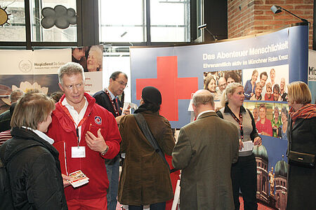 Etwa 4500 Besucherinnen und Besucher kamen heute in den Münchner Gasteig, um sich auf der Freiwilligenmesse über ehrenamtliches Engagement in München zu informieren. Das Münchner Rote Kreuz zeigte zusammen mit 80 anderen Ausstellern, was ehrenamtlich möglich ist. Und so informierten sich die Besucher beim Roten Kreuz über Einsatzmöglichkeiten in Seniorenheimen, Kindergärten, den Einsatzdiensten von Bergwacht, Bereitschaften und Wasserwacht oder beim Jugendrotkreuz und den berufsvorbereitenden Bildungsmaßnahmen.