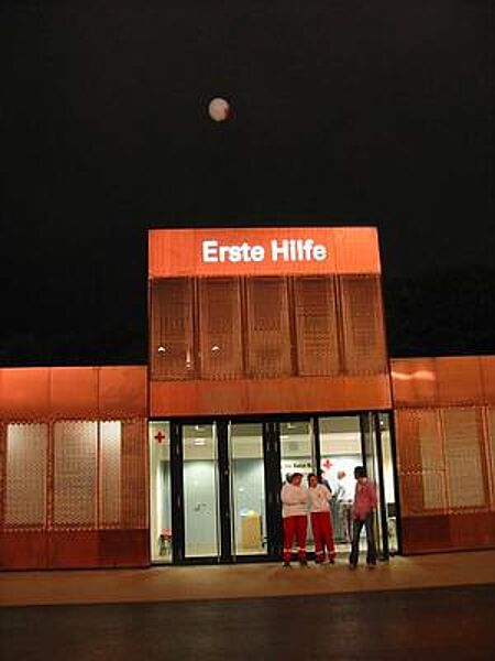 Früh aufstehen hieß es heute morgen für rund 130 Helfer des Münchner Roten Kreuzes. Da das Gelände an der neuen Messe bereits am frühen Morgen öffnete, mußten die zwei festen Unfallhilfsstellen bereits um 06.00 Uhr aufgebaut und einsatzklar sein. Die Helfer des Roten Kreuzes unterstützten den Malteser Hilfsdienst (MHD) in diesem Großeinsatz ausserdem mit einer "fliegenden Unfallhilfsstelle", die auf dem Messegelände, getreu nach dem Motto "jederzeit bereit" ebenfalls um 06.00 Uhr in Warteposition ging.