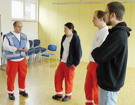 07:45 Uhr, Halbmarathon-Laufstrecke Nähe Aumeister, Regen, 19 Grad: Die Einsatzbereitschaft der RK-Wache wird über Funk an die Zentrale Einsatzleitung übermittelt. Die Wache 8 besteht aus 4 Helfern der BS…