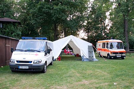 Ehrenamtliche Helfer des Münchner Roten Kreuzes sicherten von Samstagnachmittag bis in die Nacht hinein die Fanmeile auf der Münchner Leopoldstraße, auf der tausende Fußballfans den Sieg der deutschen Fußball-Nationalmannschaft über das Team Argentiniens feierten. Gemeinsam mit ehrenamtlichen Kräften des Malteser-Hilfsdienstes, der Johanniter-Unfallhilfe und des Arbeiter-Samariter-Bundes waren die aktiven Rotkreuzler zwischen fünf Uhr nachmittags und elf Uhr abends an der Münchner Freiheit, der Franz-Joseph-Straße und an Siegestor und Geschwister-Scholl-Platz im Einsatz.