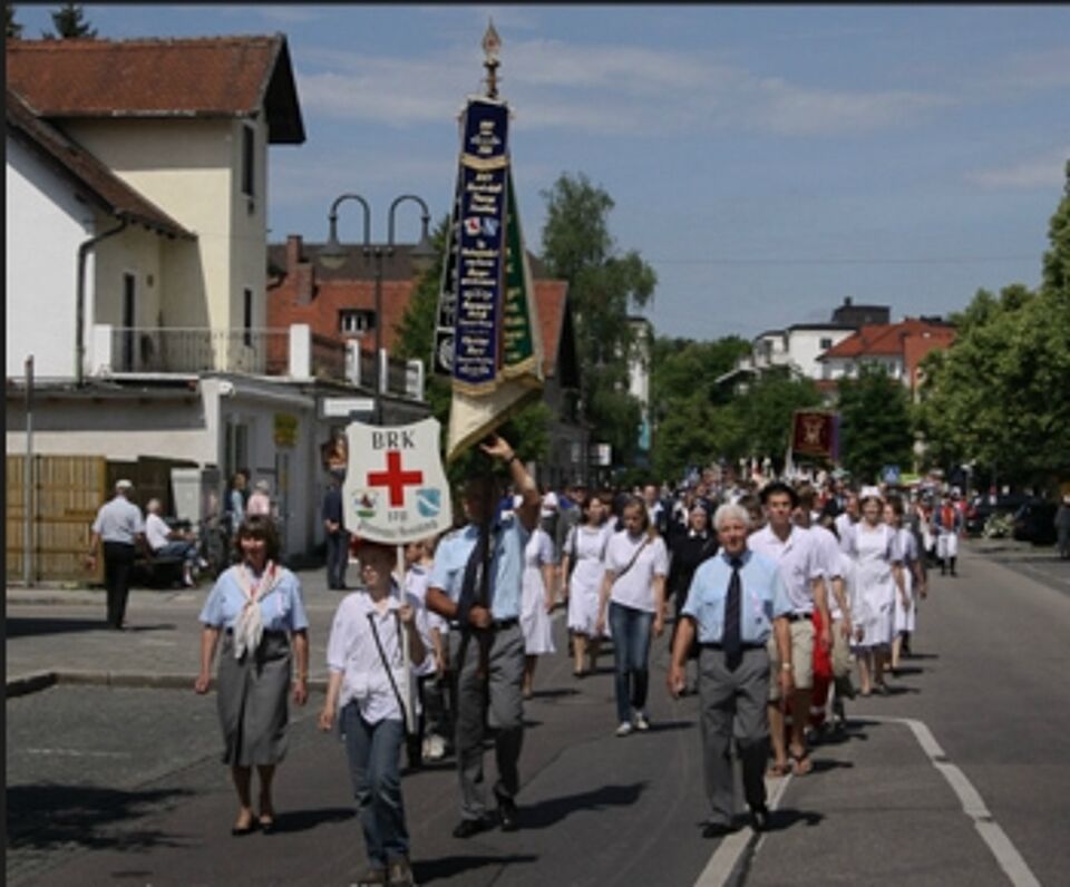 Trotz des langen Abends und mehreren Zugaben beginnt der nächste und abschließende Tag der Festwoche früh mit einem ökumenischen Festgottesdienst in Maria Eich und mit einem großen Festumzug durch Planegg, an dem rund 700 Trachtler, Musiker und Rotkreuzler teilnehmen. Allein 7 Blaskapellen begleiten den Festzug, die anschließend zum Tag der Blasmusik spielen. Dieser findet heuer zum 10. Mal statt. Alle großen Vereine aus dem Würmtal und viele Rotkreuzgruppen nehmen teil, drei Kutschen stehen für die Ehrengäste zur Verfügung, eine Reitergruppe führt den Zug an, gefolgt von einem Brauereigespann. Die weiteste Anreise von den befreundeten Bereitschaften haben das Rote Kreuz aus Klagenfurt und das weiße Kreuz aus Klausen in Südtirol hinter sich. Von den Musikern ist die polnische Blaskapelle aus der Nähe von Krakau mehr als 1000 km angereist.