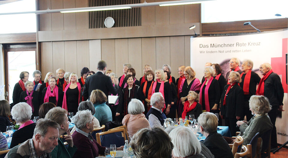 Bei Kaffee und Kuchen hatten die Gäste Gelegenheit, sich mit anderen Freiwilligen auszutauschen und mit Vertretern der Servicestelle Ehrenamt offene Fragen zu klären. Für den musikalischen Rahmen sorgte der Chor des Alten- und Servicezentrums Bogenhausen.