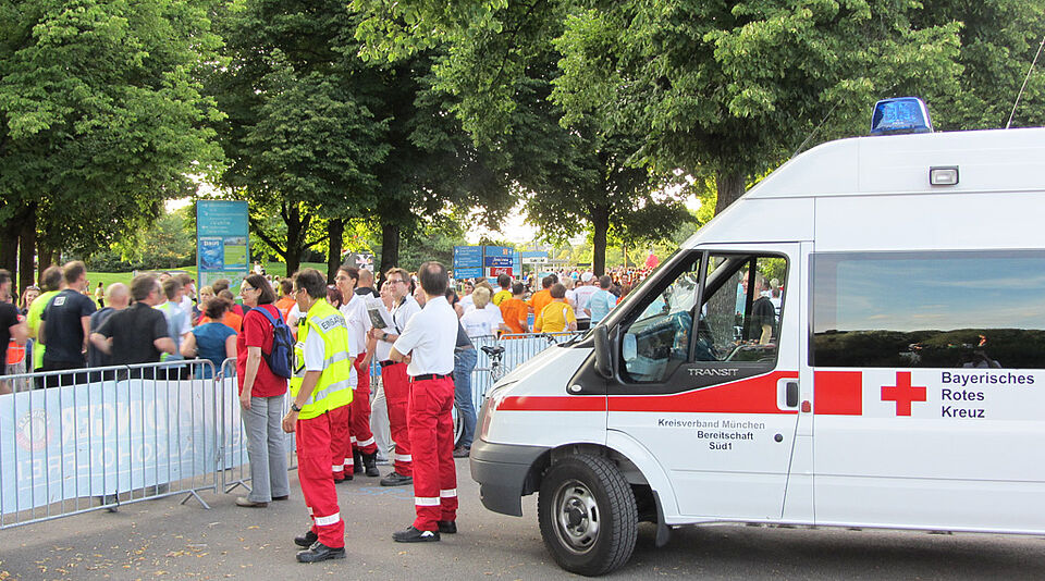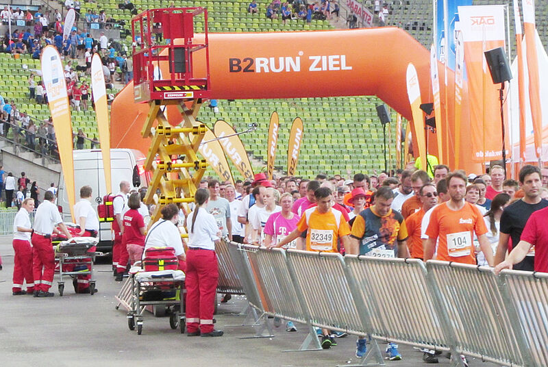 Am Dienstag fand mit rund 28.500 Teilnehmern der größte Firmenlauf in Deitschland rund um den Olympiapark statt. Rund 100 ehrenamtliche Helfer und fünd Ärzte des Münchner Roten Kreuzes hatten an acht Sanitätsstationen entlang der 6,8 Kilometer langen Laufstrecke Position bezogen, um bei Notfällen schnell Erste Hilfe leisten zu können. Außerdem besetzten sie drei Sanitätsstationen im Stadion und eine im Zieleinlauf.