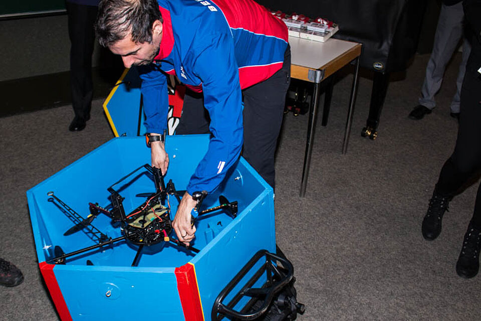 Maximilian List und Thomas Barfety berichteten über die Erfahrungen der Bergwacht Penzberg beim Einsatz eines "Kleinen Fliegenden Systems" (KFS) im Einsatz zur Lageerkundung. Durch die Kameras und Sensoren des Fluggeräts können die Einsatzkräfte am Boden vor allem bei unübersichtlichen Lagen unterstützt werden. Problematisch sehen beide die notwendige Erfahrung im Umgang mit dem KFS sowie die rechtlichen Rahmenbedingungen wie etwa die Auflage, nicht nachts und nicht über Unfällen, Katastrophen- und Sperrgebieten zu fliegen.