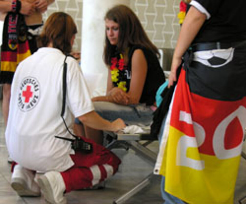 Die Fußball-WM in Deutschland war für das Rote Kreuz in München einer der größten Sanitätseinsätze in seiner Geschichte. Insgesamt waren während der WM im Stadion, auf dem Fan-Fest im Olympiapark sowie auf der "Feiermeile" in der Leopold- und Ludwigstraße über 2250 Helfer und Ärzte des Münchner Roten Kreuzes im Einsatz, die inklusive Tollwood und Betreuungseinheiten ca. 30.000 ehrenamtliche Einsatzstunden erbrachten. Dies entspricht nach Einsatzstunden einem doppelten Oktoberfest. Die Einsatzkräfte des Münchner Roten Kreuz leisteten dabei insgesamt über 2450 Mal Hilfe, meist bei Kreislaufproblemen aufgrund der Hitze und bei Schnittverletzungen durch Glasscherben. Insgesamt 180 Personen mussten während der WM zur weiteren Untersuchung ins Krankenhaus gebracht werden. Rotkreuz-Einsatzleiter Volker Ruland zeigt sich in einer vorläufigen WM-Bilanz "sehr, sehr zufrieden": "Bei Veranstaltungen mit derart hohem Besucheraufkommen ist es nicht selbstverständlich, dass schwere Verletzungen völlig ausgeblieben sind." Die wahren Gewinner seien deshalb die Fans gewesen, die fair, friedlich und fröhlich feierten, so Ruland.