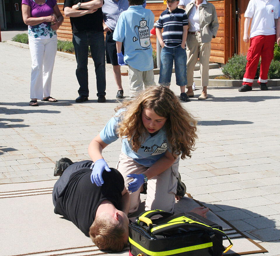 Erste Hilfe, Sonnenschein und prominenter Besuch vom Rettungshubschrauber Christoph 1 beim Aktionstag 2011 am Weltrotkreuztag im Rotkreuzhaus von Bereitschaft & Jugendrotkreuz Deisenhofen