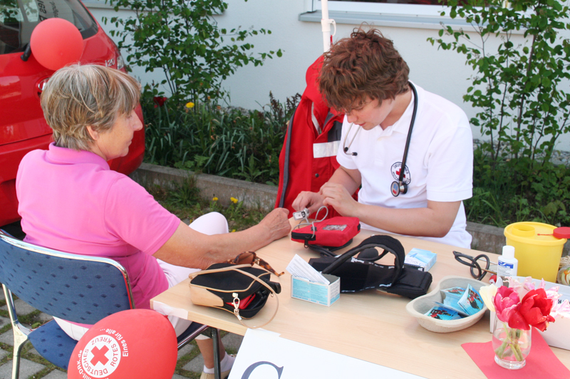Zu Gast in Deisenhofen waren am Weltrotkreuztag auch die erste Vorsitzende des Münchner Roten Kreuzes Dr. Hildegard Kronawitter und ihr erster Stellvertreter Paul Polyfka. Oberhachings Bürgermeister Stefan Schelle mischte sich ebenfalls unter die interessierten Gäste.