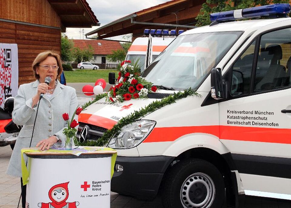 Während Thomas Frimmer sich über die neue Ausstattung freute und an die Verantwortung erinnerte, die sie für die ehrenamtlichen Helfer bei Ausbildung und Pflege mit sich bringt, bezeichnete Landrätin Johanna Rumschöttel die materielle Ausstattung als "das Mindeste, was wir für die ehrenamtlichen Helfer tun können." Sie beklagte zudem die mangelnde Sensibilität der Bevölkerung für die ehrenamtlichen Leistungen in den Hilfsorganisationen und dankte den Deisenhofener Rotkreuzlern für ihren Einsatz.