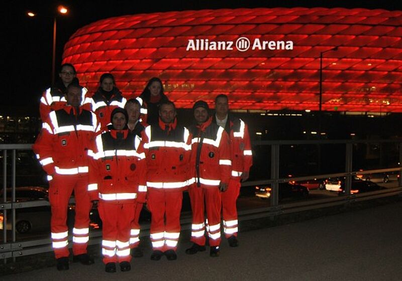 Nach der Akkreditierung wurden den Helfer/innen zunächst das Behandlungszentrum in der Allianz Arena gezeigt und erklärt, danach erfolgte die Einteilung auf zwei Wachbereiche innerhalb des Stadions. Im Wachbereich angekommen, wurden sie in die örtlichen Gegebenheiten eingewiesen.