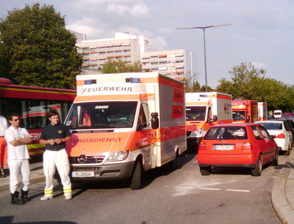 Das Münchner Rote Kreuz war sowohl mit Rettungswagen als auch mit einem Helfer seiner