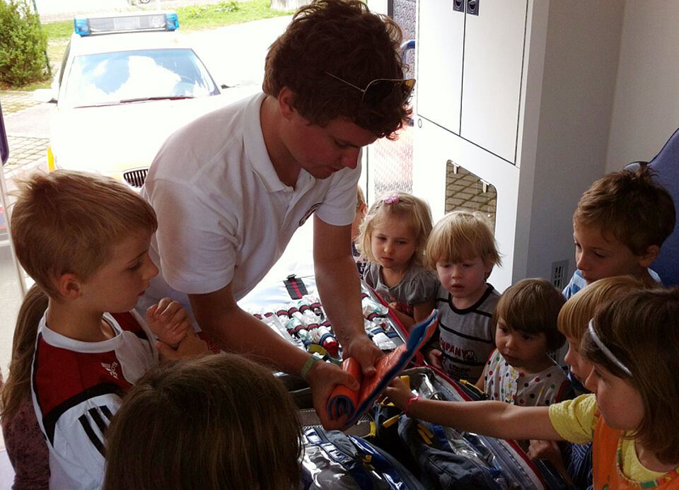 "Es macht immer wieder Spaß, den Kindern die Erste Hilfe und unsere Ausrüstung zu erklären", freut sich Andreas Heckenstaller vom Deisenhofener Roten Kreuz. "Bei unserem Fallbeispiel konnten sie all das üben, was sie vorher theoretisch gelernt hatten. Und wer weiß, vielleicht engagiert sich die eine oder der andere unserer Besucher später selbst mal ehrenamtlich beim Roten Kreuz."