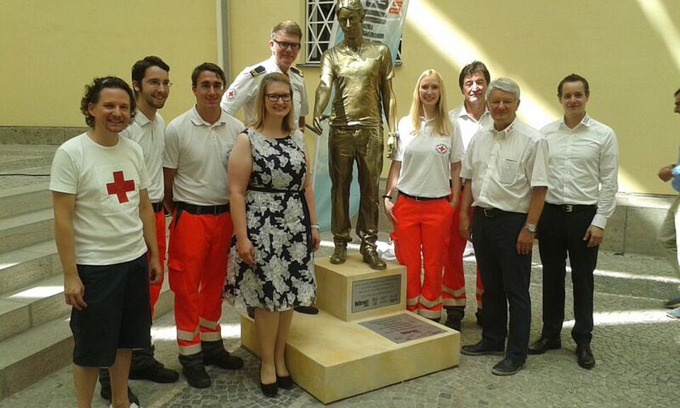 Am Samstag, den 18.7.2015, gab der bayerische Innenminister Joachim Herrmann im Innenhof des Innenministeriums in München ganz offiziell gemeinsam mit den sechs Hilfs- und Einsatzorganisationen für den Bevölkerungsschutz und der vbw – Vereinigung der Bayerischen Wirtschaft e. V. mit der Enthüllung einer Helfer-Statue den Startschuss für die Nachwuchskampagne „Helfernetz Bayern“. Auch das Münchner Rote Kreuz war mit dem Gerätewagen Sanitätsdienst und vier ehrenamtlichen Helfern der Bereitschaft West 1 an der Aktion beteiligt, um dem Ehrenamt im Bevölkerungsschutz ein Gesicht zu geben.