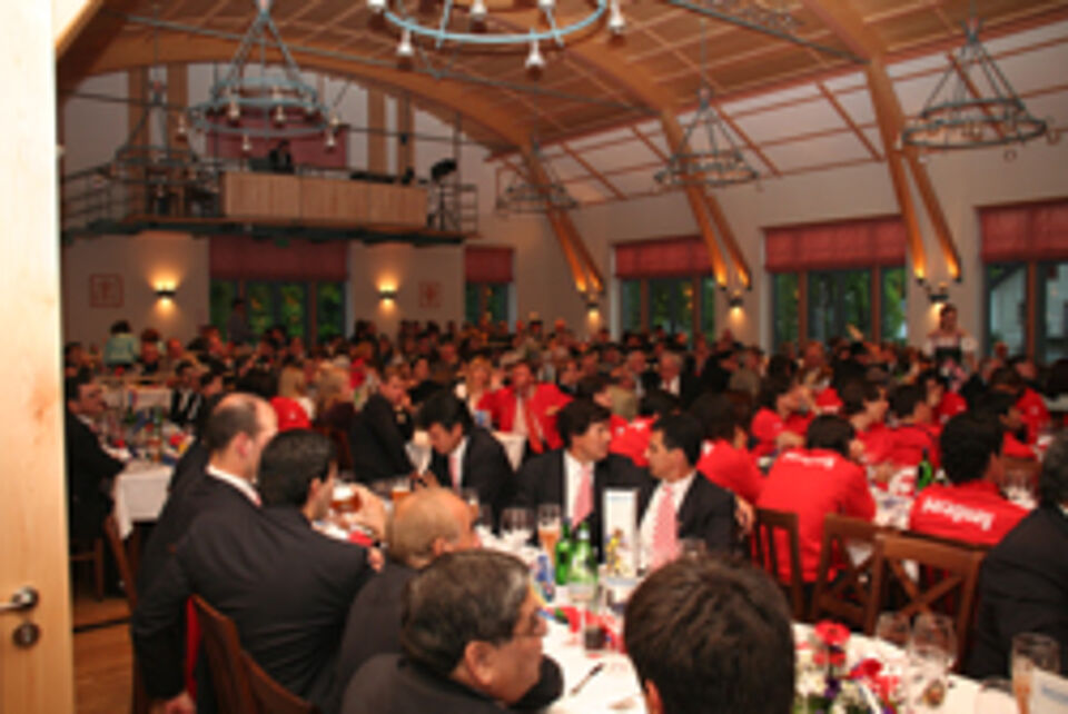 Direkt im Anschluss gesellten sich die Spieler zum Empfang der Gemeinde Oberhaching und des BFV im Oberhachinger Gemeindsaal. 250 geladene Gäste verfolgten nicht nur die Festreden, unter anderem der Botschafterin Paraguays, Lilianne Lebron-Wenger , sondern ließen sich auch das bayerische Menü schmecken.