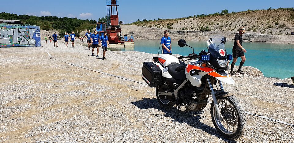 In einem gemeinsamen Einsatz der Wasserwacht und den Bereitschaften des Münchner Roten Kreuzes - denn auf beim Roten Kreuz wird Teamarbeit groß geschrieben - kümmerten sich insgesamt 34 ehrenamtliche Helfer*innen (davon 2 Ärzt*innen) um die meist chirurgischen Verletzungen der Starter. Neben einer Unfallhilfsstelle im Zielbereich waren die Helfer*innen des Roten Kreuzes an 7 Standorten im Streckenlauf sowie mit 4 mobilen Einheiten im Einsatz.