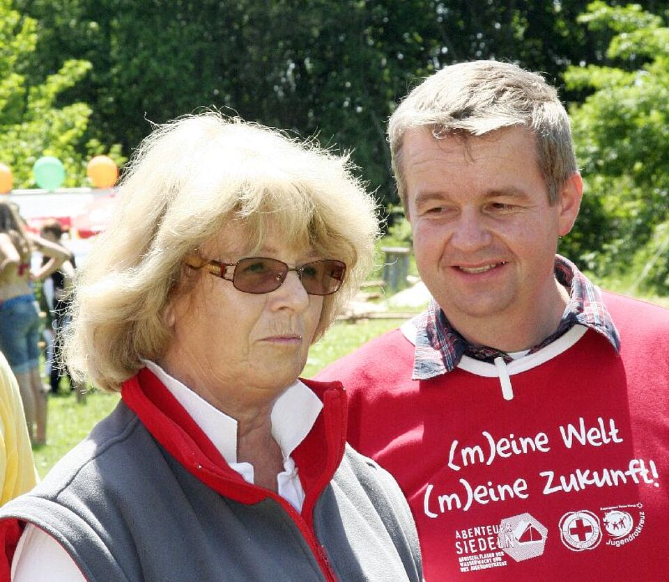 Nach dem Dauerregen der vergangenen Tage reagierten alle sichtlich erleichtert auf die Sonne. Auch die Präsidentin des Bayerisches Roten Kreuzes, Christa von Thurn und Taxis, die das Zeltlager besuchte, freut sich über das schöne Wetter. Und nicht nur darüber: "Wirklich beeindruckend, wie die ehrenamtliche Projektgruppe und ihre Helfer hier ein spannendes und topaktuelles Bildungs- und Erlebniskonzept auf die Beine gestellt hat.", so das Fazit von Christa von Thurn und Taxis. "Das ist auch ein Beweis für die Leistungsfähigkeit und die Begeisterung unserer ehrenamtlichen Helfer im Roten Kreuz."