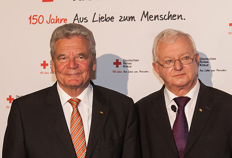 Bei einem zentralen Festakt mit Bundespräsident Joachim Gauck hat das Rote Kreuz in Deutschland heute in der Stuttgarter Liederhalle sein 150-jähriges Jubiläum begangen. Bundespräsident Joachim Gauck würdigte in einer Festrede die Arbeit der Nationalen Hilfsorganisation. DRK-Präsident Dr. Rudolf Seiters hob den Stellenwert der ehrenamtlichen Arbeit für die deutsche Gesellschaft hervor: „In den nächsten Jahrzehnten wird es darauf ankommen, dem demographischen Wandel zu begegnen und die junge Generation für ein bürgerschaftliches Engagement zu gewinnen.“