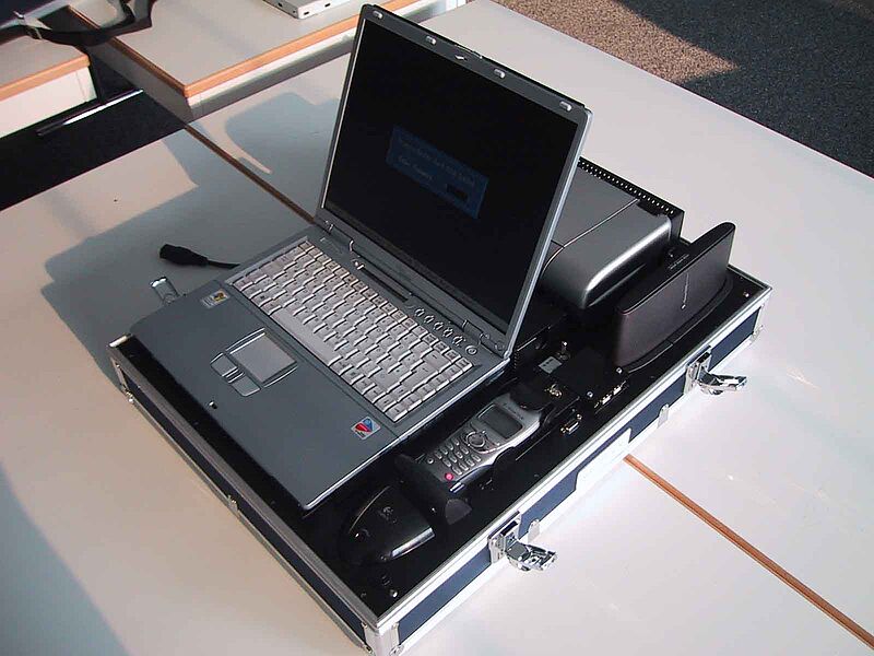 In zwei Koffern sind neben Laptop und Drucker/Fax/Scanner/Kopierer-Kombination auch eine schnurlose Telefonanlage sowie zwei Mobiltelefone untergebracht. Das Kommunikationspaket soll die Einsatzleitungen vor Ort bei der Abwicklung unterstützen und vor allem die Registrierung der Helfer, Betroffenen und Verletzten erleichtern.