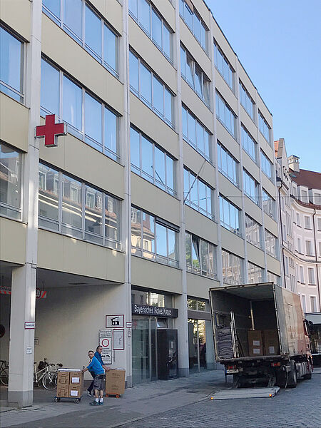 Das Münchner Rote Kreuz zieht mit seiner Geschäftsstelle vom Lehel nach Sendling. Letzte Woche war es nach langer Planung so weit: Die ersten Abteilungen konnten die neuen Räume in der Perchtinger Straße 5 beziehen. Auch diese Woche finden noch Umzüge statt, weshalb es zu Einschränkungen bei der Erreichbarkeit kommen kann. Wenn sich die Abläufe am neuen Standort eingespielt haben und die letzten Bauarbeiten abgeschlossen sind, soll im September eine offizielle Eröffnung erfolgen.