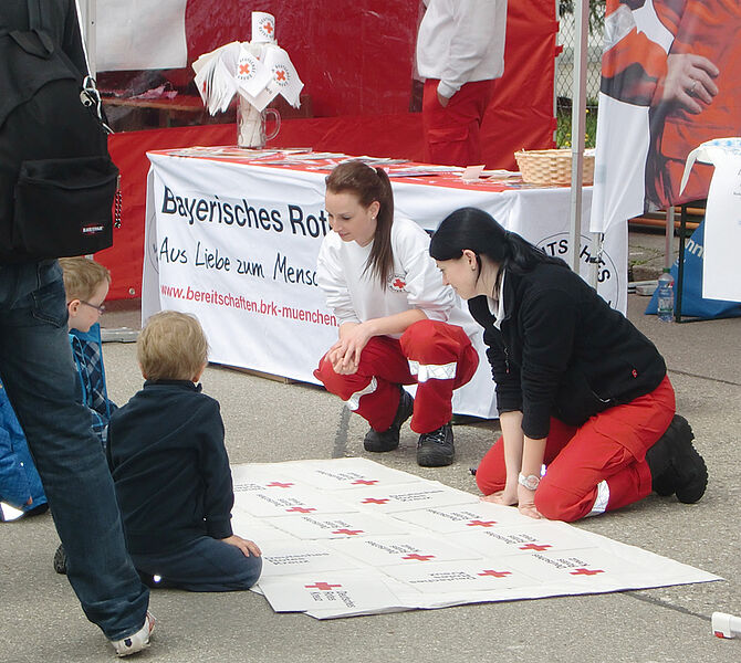 Auch das Rote Kreuz war dabei: Die ehrenamtlichen Helfer der Bereitschaft Sauerlach übernahmen nicht nur den Sanitätsdienst für die Veranstaltung. Sie informierten auch an ihrem Stand über ihr ehrenamtliches Engagement und viele andere Leistungen des Roten Kreuzes. An der Übungspuppe konnten Besucher die Wiederbelebung und die stabile Seitenlage üben und für die Kleinen gab es ein spannendes Riesen-Memory.