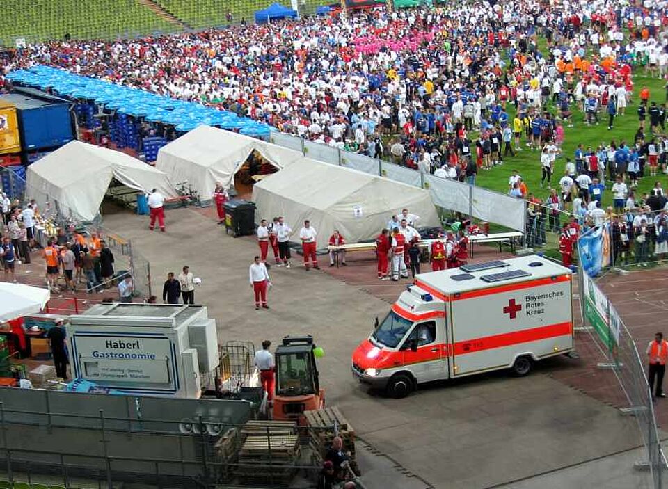 Das Münchner Rote Kreuz war mit 75 Helfern und vier Ärzten vor Ort.