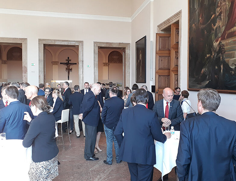 Anlässlich des Weltrotkreuztags am 8. Mai veranstaltete das Bayerische Rote Kreuz (BRK) seinen Jahresempfang in den Räumen des Bayerischen Landtags. Etwa 200 geladene Gäste feierten neben diesem Anlass auch den Beitritt Bayerns zur Genfer Konvention vor 152 Jahren. Daher stand auch das humanitäre Völkerrecht im Vordergrund der Veranstaltung. Das Münchner Rote Kreuz nahm mit drei Vorstandsmitgliedern und zwei weiteren Vertretern an der Veranstaltung teil.