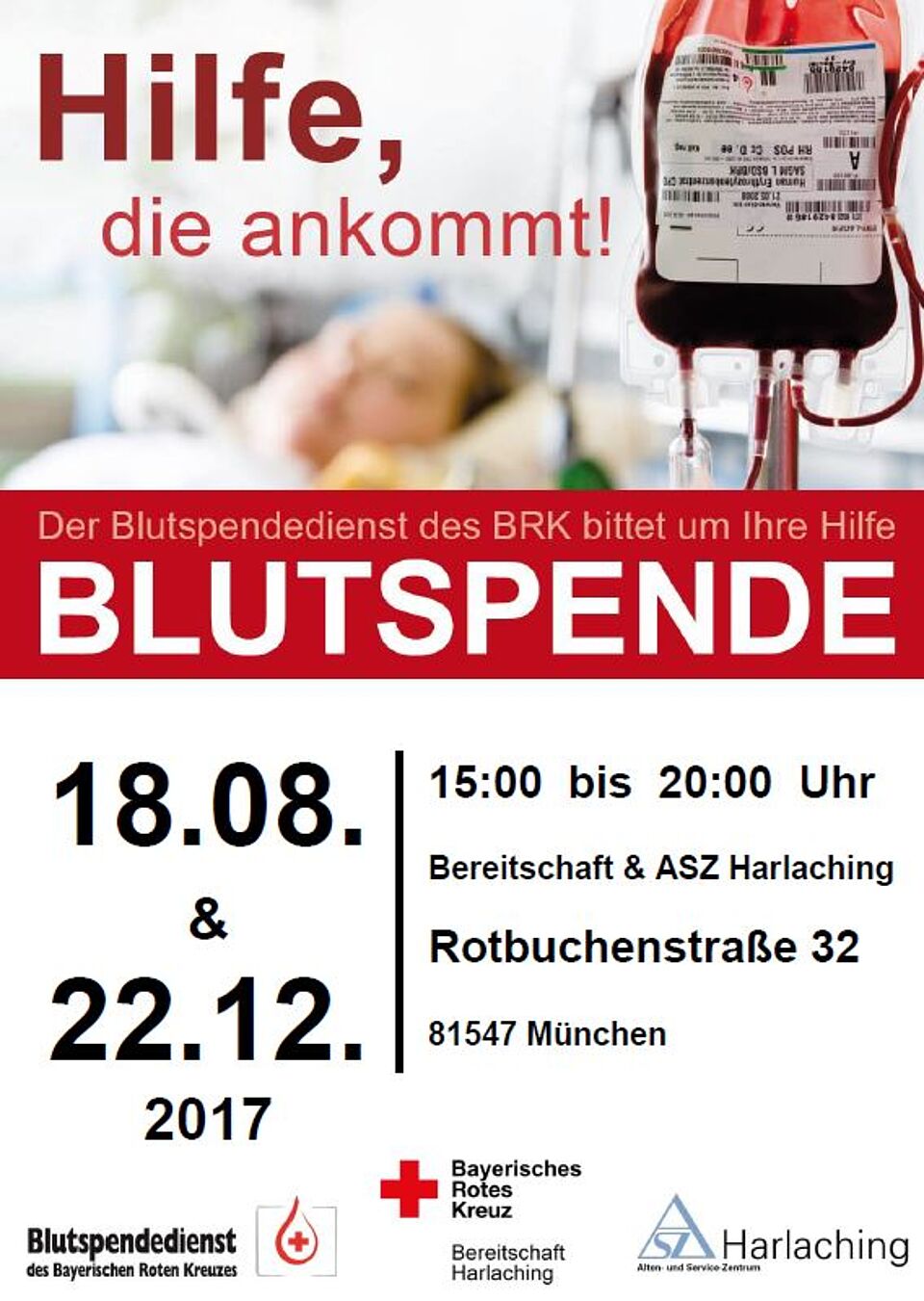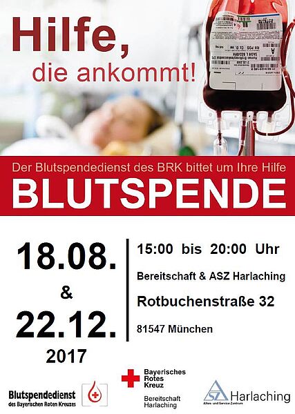 Gerade in den Sommerferien werden in Bayern oft die Blutreserven klappt, weil viele Blutspender*innen im Urlaub sind. Deshalb bieten die Bereitschaften Trudering und Harlaching des Münchner Roten Kreuzes in Zusammenarbeit mit dem Blutspendedienst des Bayerischen Roten Kreuzes gleich zwei Möglichkeiten zum Blutspenden im August: