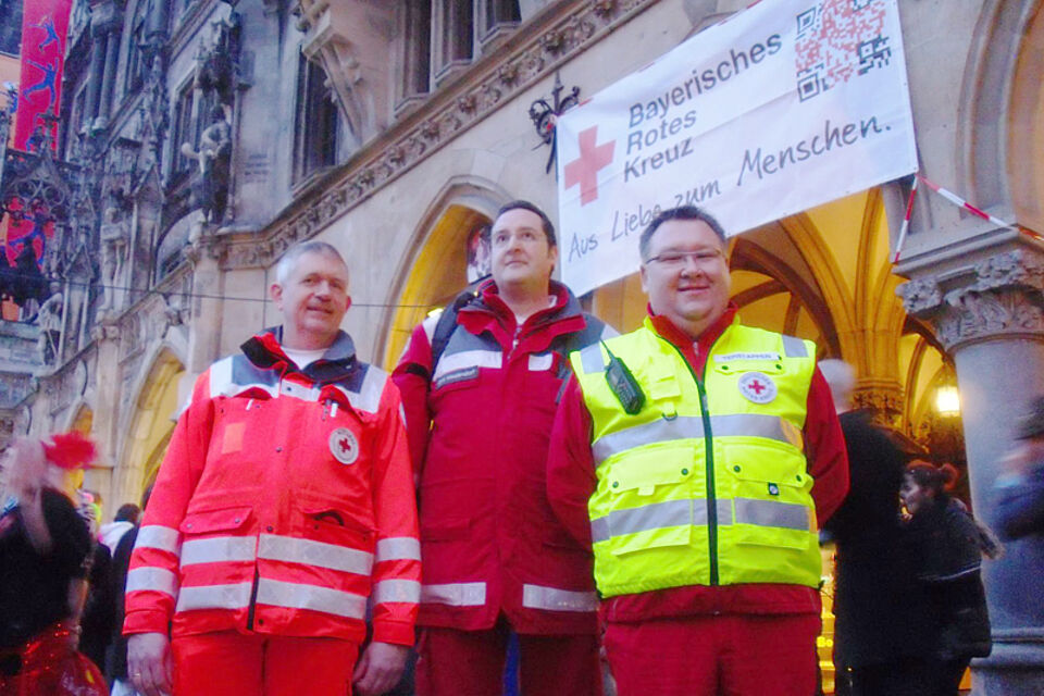 Damit die feierfreudige Münchener Bevölkerung sich auch medizinisch gut versorgt fühlen konnte, waren mehr als 40 ehrenamtliche Helfer und zwei Notärzte des Münchener Roten Kreuzes am Viktualienmarkt, in der Fußgängerzone und in der Ratstrinkstube des Rathauses im Einsatz.