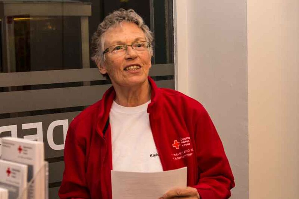 Hr. Paul Polyfka, Vorsitzender des Münchner Roten Kreuzes betonte in seinem Grußwort, wie gut die soziale Aufgabe der Ausgabe von gebrauchter Kleidung an Bedürftige das Aufgabenspektrum des Roten Kreuzes ergänzt. Vor allem, da die öffentliche Wahrnehmung der Organisation oft noch vom Rettungs- und Sanitätsdienst geprägt sei. Dabei nehme das Rote Kreuz auch über die Kleiderkammer hinaus viele soziale Aufgaben wahr. Er berichtete von einem Fall, der sich in seinem Beisein in einer Rotkreuz-Kleiderkammer in einer anderen Stadt zugetragen hatte: Ein Mann mittleren Alters, unverschuldet in Armut geraten, stand dort mit Tränen in den Augen vor dem Spiegel. In einem Anzug, den er sich selbst nie mehr hätte leisten können. Solche und ähnlich bewegende und einprägsame Erlebnisse wünschte er dem 20-köpfigen Team der Kleiderkammer Solln und verband das mit einem herzlichen Vergelt's Gott für die im Jahr 2015 knapp 2000 Arbeitsstunden umfassende Tätigkeit.