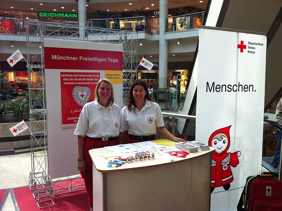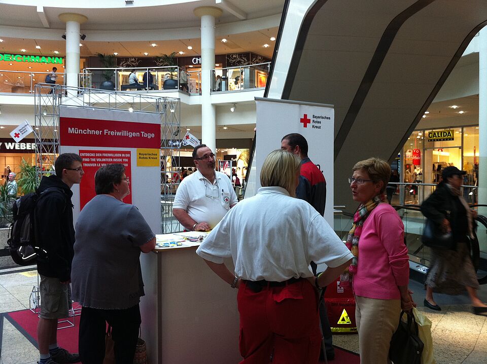 Beim Infopoint zum bürgerschaftlichen Engagement in München, der am 1. Juli im PEP (Perlacher Einkaufszentrum) stattfand, durfte auch das Münchner Rote Kreuz in Gestalt der Bereitschaft Neuperlach nicht fehlen.
