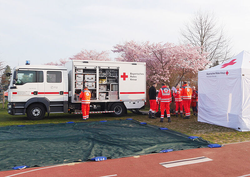 Die Bereitschaften des Münchner Roten Kreuzes waren mit über 20 ehrenamtlichen Helfer*innen inklusive Notarzt vor Ort. Neben der obligatorischen Sanitätsstation im Start-/Zielbereich gab es über die Strecke verteilt mehrere mobile Wachen. Ein Motorrad und das Notarzteinsatzfahrzeug begleiteten die Läufer. Aufgrund schwer befahrbarer Streckenabschnitte waren einige Allradfahrzeuge im Einsatz. Mit insgesamt fünf Erste-Hilfe-Leistungen war es ein sehr ruhiger Dienst.