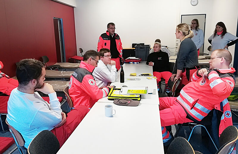 "Die Zusammenarbeit mit den örtlichen Kolleg*innen klappt wunderbar und wir freuen uns, dass wir helfen können", sagt Thomas Frimmer, diensthabender Leiter der Schnelleinsatzgruppe Betreuung des Münchner Roten Kreuzes.