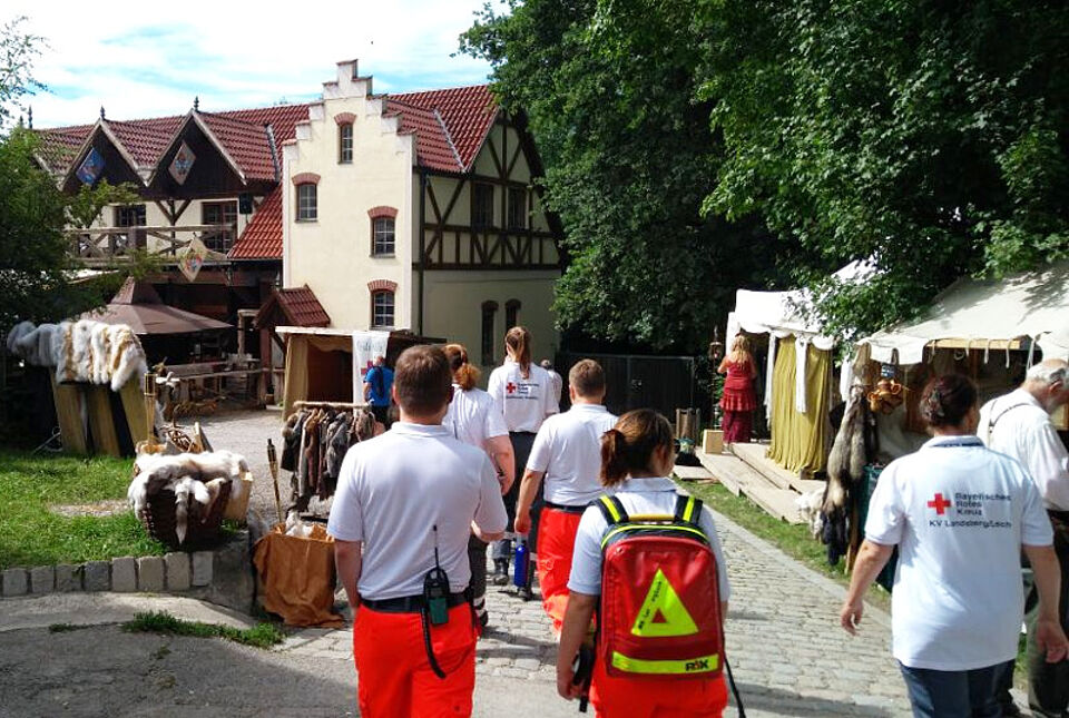 Parallel zum großen Dienst auf dem Sommernachtstraum im Olympiapark sicherten 11 ehrenamtliche Helfer*innen des Münchner Roten Kreuzes am Samstag gemeinsam mit Rotkreuzler*innen aus Landsberg die Ritterspiele auf Schloss Kaltenberg ab.