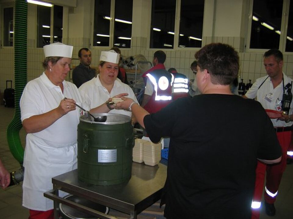 Die für diese Aufgaben speziell ausgebildeten Helfer der Schnelleinsatzgruppe Betreuung machten sich sogleich an die Arbeit: zusammen mit der Freiwilligen Feuerwehr Aschheim wurde in deren Gerätehaus eine Akutbetreuungsstelle eingerichtet, in der die Betroffenen zur Ruhe kommen konnten und mit warmen Essen sowie Getränken versorgt wurden.