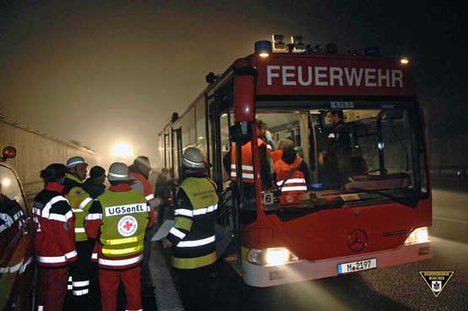 Dort waren mehrere Autos zusammengestoßen und insgesamt 20 Menschen zum Teil schwer verletzt worden. Die glatten Straßen und die geringe Sicht erschwerten den Einsatz des Rettungsdienstes erheblich. Die Berufsfeuerwehr setzte auch einen Großraumrettungswagen ein, um die Verletzten in Münchner Kliniken zu bringen. Gegen drei Uhr war der Einsatz für das Münchner Rote Kreuz beendet.