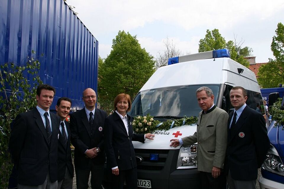 Am Samstag fand eine gemeinsame Fahrzeugweihe des Roten Kreuzes und des Technischen Hilfswerks an der Vockestraße in Haar statt. Das neue Mehrzweckfahrzeug "Rot Kreuz München 42/11/9" der BRK-Bereitschaften Haar und Perlach wurde zusammen mit drei neuen Fahrzeugen des Technischen Hilfswerks München Land von Prälat Obermeier gesegnet und offiziell in Dienst gestellt.