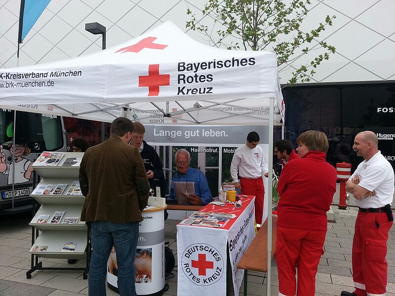 Die Rotkreuz-Bereitschaft Pasing, die seit über 120 Jahren eine feste Institution in Pasing ist, präsentierte nicht nur wichtige Erste-Hilfe-Maßnahmen, die jeder wissen sollte, sondern führte auch die allzu gerne angenommenen Blutzucker und Blutdruckmessungen durch.