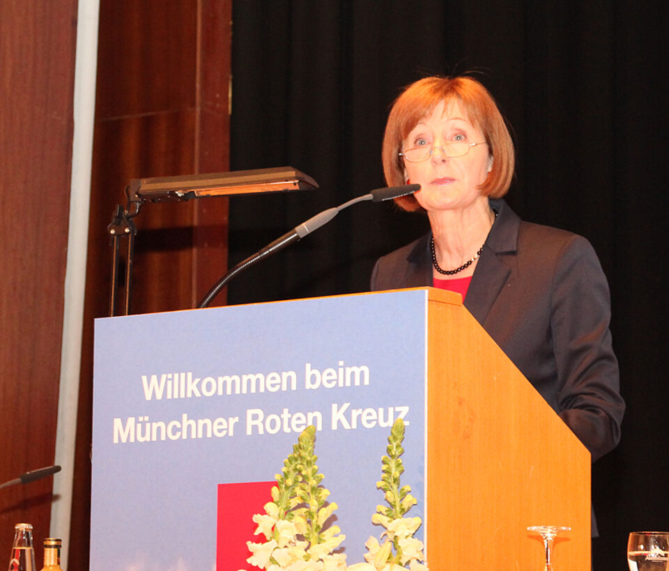 Angesichts der 150jährigen Tradition des Roten Kreuzes in Deutschland seien vier Jahre zwar nur ein Wimpernschlag, umso wichtiger sei es allerdings, in München einen wertvollen Beitrag zum Fortbestehen des Roten Kreuzes weltweit zu leisten. Kronawitter dankte allen ehrenamtlichen Helfern der Rotkreuzgemeinschaften Bereitschaften, Bergwacht, Jugendrotkreuz und Wasserwacht sowie den beruflichen Mitarbeiterinnen und Mitarbeitern der Geschäftsstelle, die sich in vielen sozialen Dienstleistungen engagieren. Dabei hob sie einige Leistungen besonders hervor. Sie bedankte sich auch bei allen Spendern und Förderern, die die Arbeit des Münchner Roten Kreuzes erst möglich machen.