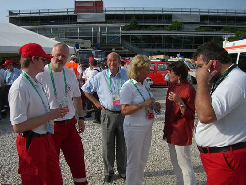 Am 21. JUni 2006, dem 4. Spieltag in München besuchte die Präsidentin des Bayerischen Roten Kreuzes, Prinzessin Christa von Thurn und Taxis, die ehrenamtlichen Helfer.