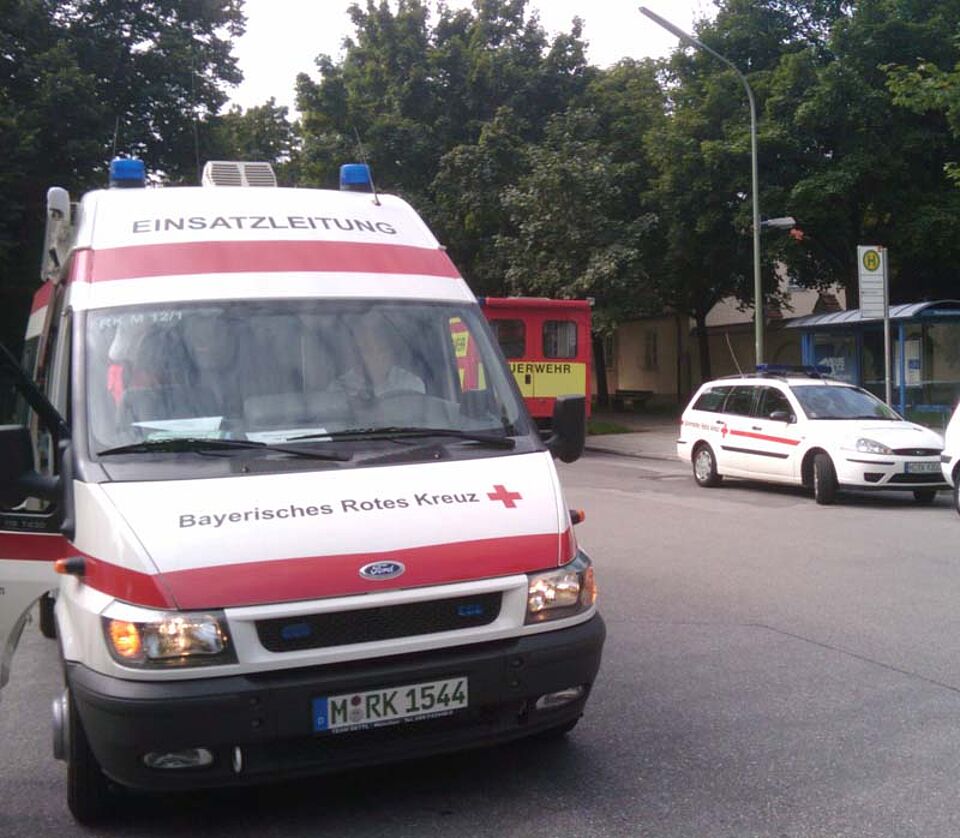 Einsatzleitwagen des Münchner Roten Kreuzes. Die Schnelleinsatzgruppe Behandlung des Münchner Roten Kreuzes konnte bereits auf der Anfahrt wieder abbestellt werden, da glücklicherweise keine Verletzten zu beklagen waren und die Ursache schnell von der Feuerwehr behoben werden konnte.