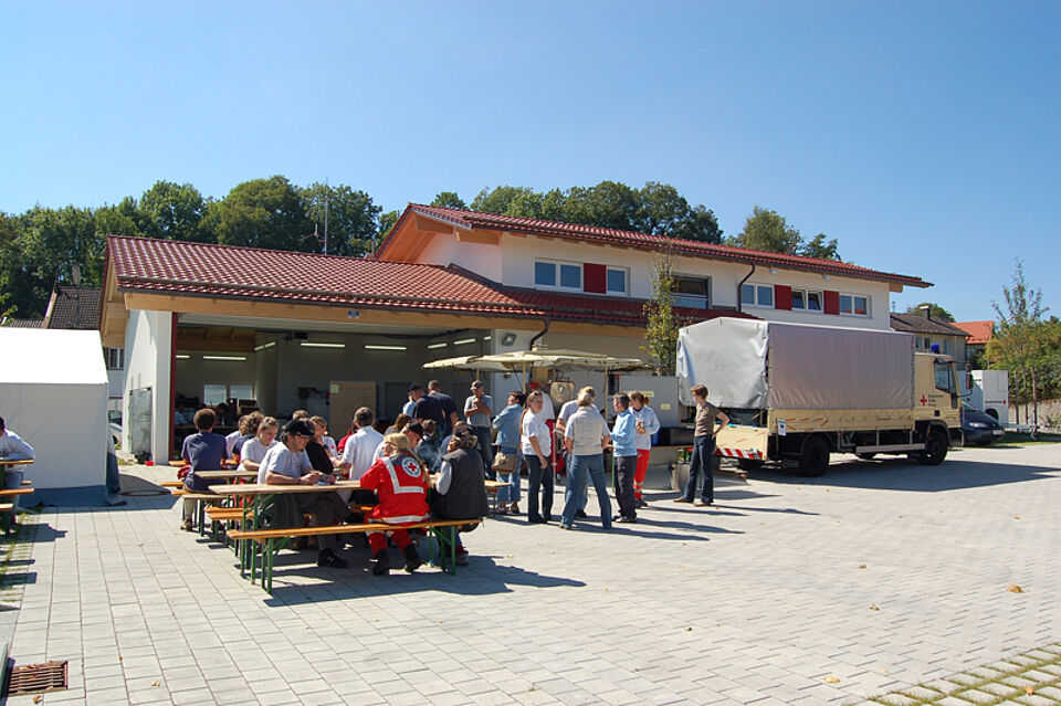 Ein glücklicher Zufall wollte es, dass am gleichen Wochenende im Schulungszentrum der Deisenhofener Bereitschaft ein Grundlehrgang des Betreuungsdienstes stattfand: Die Teilnehmer konnten praktisch üben und Teilnehmer und Gäste der Rettungshundeprüfung mit warmen Mahlzeiten versorgen. “Normalerweise sagen wir theoretisch, wie professionell Essen vorbereitet und ausgegeben wird. Bei diesem Kurs konnten wir es sofort praktisch üben, das hat einen ganz anderen Stellenwert und macht auch mehr Spaß”, sagt Thomas Frimmer, der Fachdienstleiter des Betreuungsdienstes. Der Bereitschaftsleiter des Deisenhofener Roten Kreuzes Gabriel Bücherl freute sich über die vielen Gäste: “Bei uns war richtig viel los, die Stimmung war klasse, ganz unterschiedlich arbeitende Ehrenamtliche aus allen Ecken Bayerns sind aufeinandergetroffen und konnten sich austauschen. Außerdem haben wir trotz des Papstbesuches und verschiedener anderer Dienste gezeigt, dass wir in der Lage sind, solche Großveranstaltungen in Deisenhofen auszurichten.”