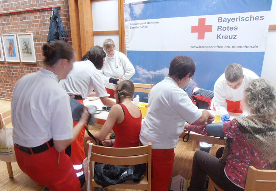 Auch heuer präsentierten sich die Mitglieder der Bereitschaft Feldmoching des Münchner Roten Kreuzes auf der Feldmochinger Gewerbeschau am 10. und 11. Oktober 2015 in der Mehrzweckhalle Feldmoching. Viele Besucher und Aussteller nutzten die Möglichkeit, sich kostenlos den Blutdruck messen und den Blutzuckerwert bestimmen zu lassen. Viele Besucher informierten sich zudem über die verschiedenen ehrenamtlichen Einsatzgebiete des Roten Kreuzes in Feldmoching. Überdies übernahmen die Feldmochinger Rotkreuzler natürlich auch die sanitätsdienstliche Betreuung der Veranstaltung.