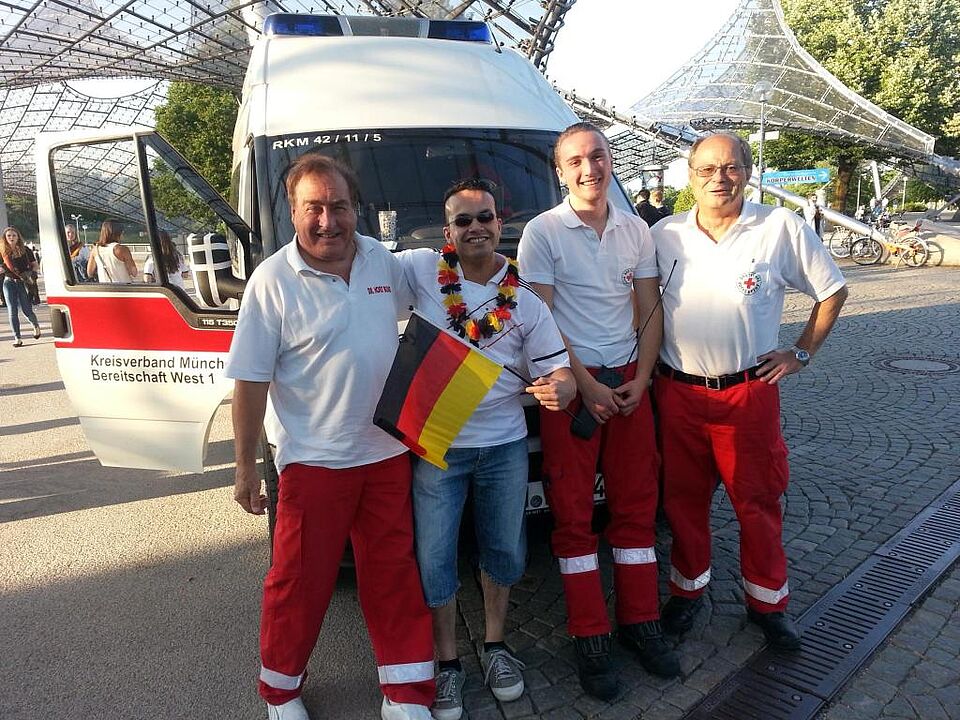 Mehr als 20 Einsatzkräfte der Bereitschaften des Münchner Roten Kreuzes sorgten für das Wohl der Fußballfans im Olympiastadion.