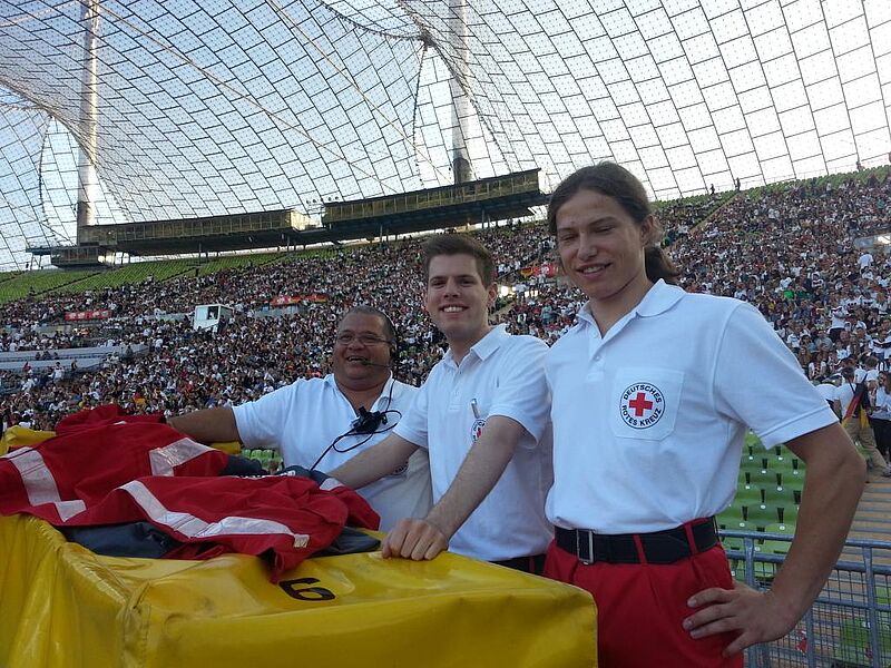 Routiniert und zuverlässig kümmerten sich die ehrenamtlichen Helfer des Münchner Roten Kreuzes am Samstag um tausende Fußballfans im Olympiapark.