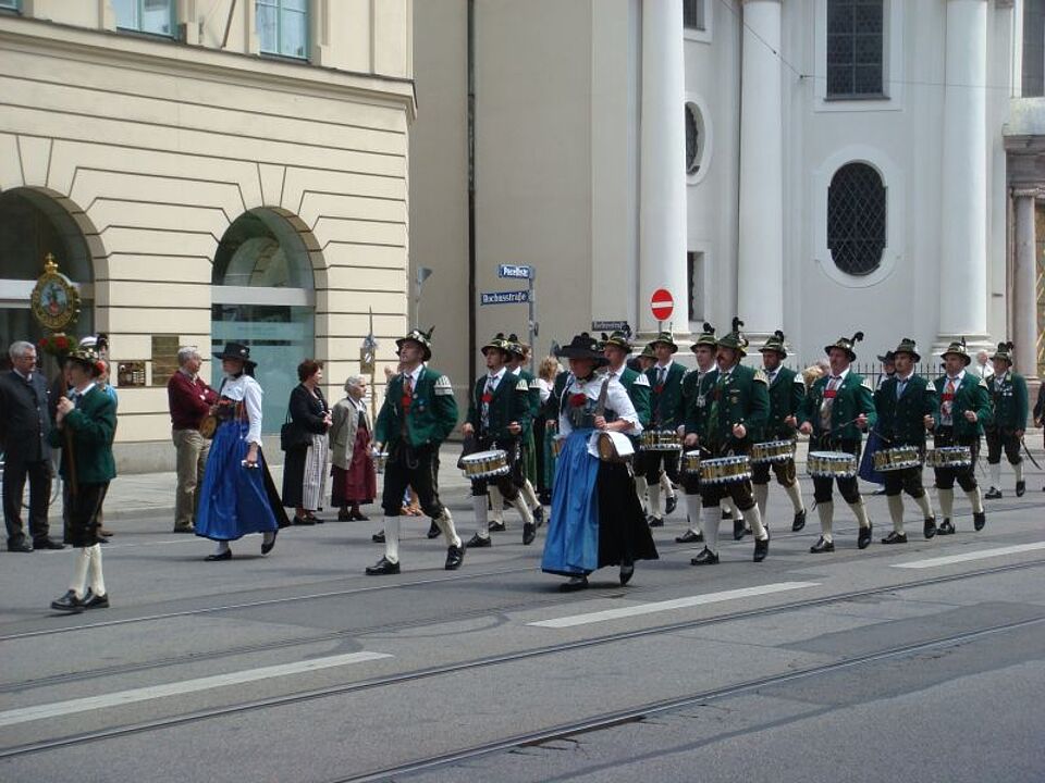 Beim Patronatstag der Bayerischen Gebirgsschützen-Kompanien am Sonntag stand das Münchner Rote Kreuz mit 14 ehrenamtlichen Helferinnen und Helfer bereit, um bei medizinischen Notfällen schnellstmöglich eingreifen zu können.