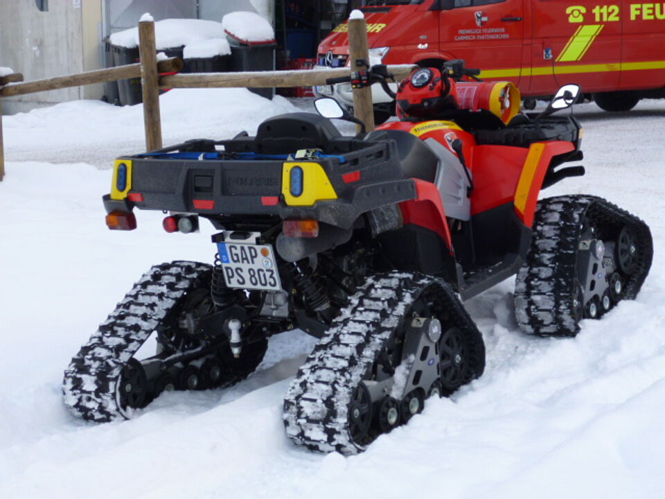 "Bei minus 8°C ist so ein Sanitätsdienst durchaus eine Herausforderung für die Helfer. Da alle Wege und Plätze mit Schnee bedeckt sind, stellt dies auch eine besondere Anforderungen an die Rettungsmittel", verrät ein Garmischer Rotkreuzler und zeigt auf ein Schneemobil der Bergwacht.
