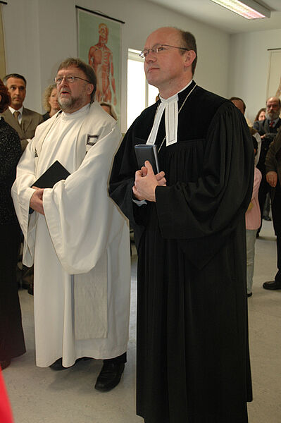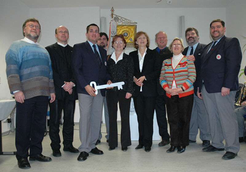 Einem feierlichen Einzug unter Begleitung des Rotkreuz-Musikzuges folgten die Schlüsselübergabe durch die Vorsitzende des Bezirksausschusses 9, Ingeborg Staudenmeyer, sowie die ökumenische Segnung durch die Dekane Weigelt und Stahlschmidt. Nach einigen Grußworten hieß es dann feiern staunen im Rotkreuzhaus Schulstraße.