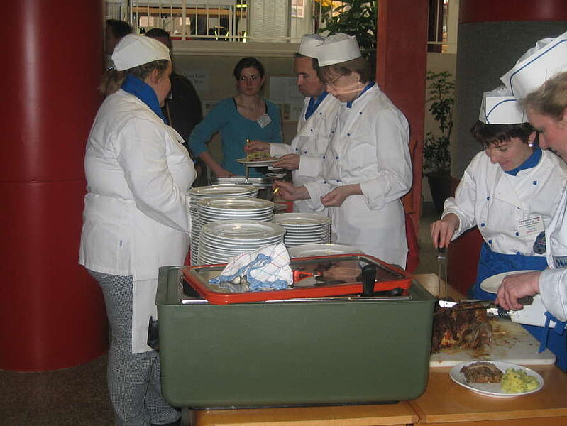 Der Betreuungsdienst des Münchner Roten Kreuzes versorgt 250 Tagungsteilnehmer mit traditionell bayerischer Küche