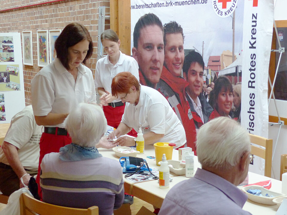 Natürlich präsentierten sich die Mitglieder der Bereitschaft Feldmoching auch heuer wieder mit einem Informationsstand und boten den Besuchern der Gewerbeschau die kostenlose Bestimmung von Blutdruck und Blutzucker an. Das Angebot wurde sehr rege angenommen und daneben konnten viele angenehme Gespräche mit den Besuchern und Ausstellern der Gewerbeschau geführt werden.