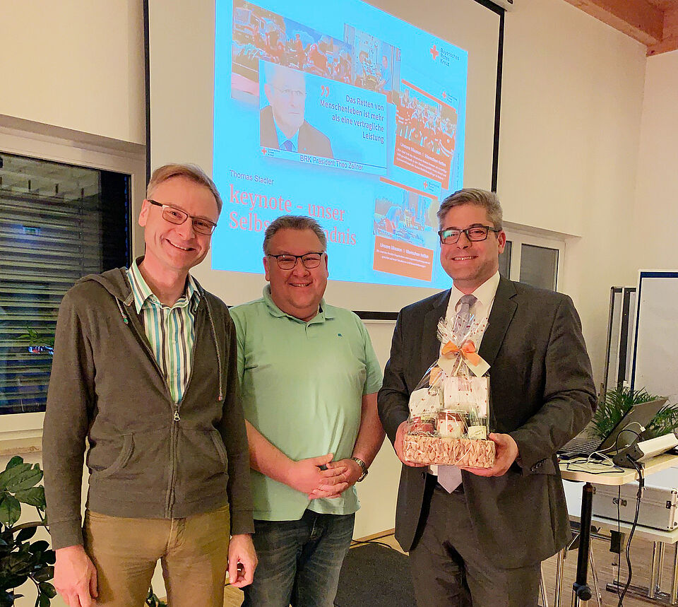 Los ging es am Freitag Abend mit einem Impulsvortrag zum Zukunftsprozess des Roten Kreuzes in Bayern und den rechtlichen Entwicklungen bei der Vergabe von Rettungsdienstleistungen. Dazu führte Thomas Stadler, Abteilungsleiter Rettungsdienst in der Landesgeschäftsstelle des Bayerischen Roten Kreuzes, die Teilnehmer*innen in die Thematik ein und betonte die enge Verzahnung zwischen beruflichen und ehrenamtlichen Leistungen im Bevölkerungsschutz.